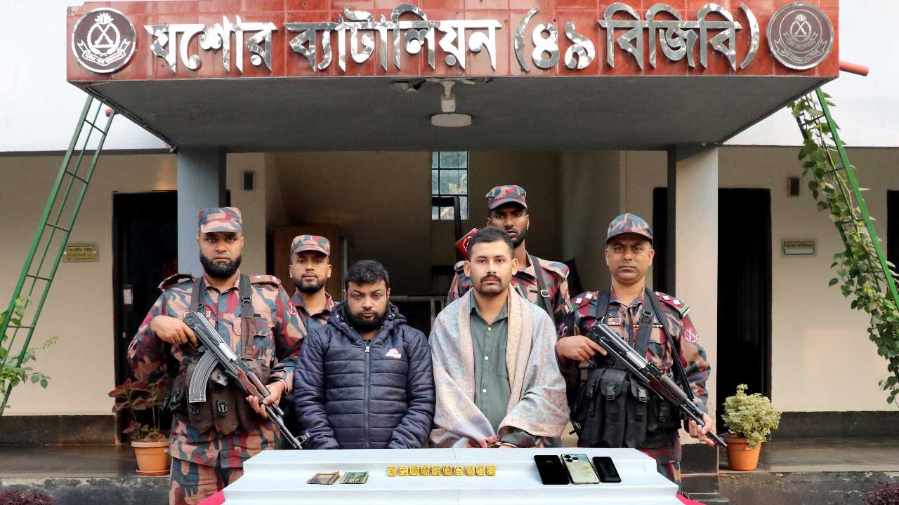 বিজিবি সূত্রে জানা গেছে, গোপন সংবাদের ভিত্তিতে বৃহস্পতিবার ভোরে যশোর সদর উপজেলার মুরাদগড় বাসস্ট্যান্ড এলাকায় অভিযান চালিয়ে ফরিদুল ও মাহাফুজকে আটক করে বিজিবি। পরে তাদের দেহ তল্লাশি চালালে প্যান্টের পকেটে বিশেষ কায়দায় লুকানো ১০টি স্বর্ণের বার পাওয়া যায়। যার ওজন এক কেজি ১৬৪ গ্রাম।