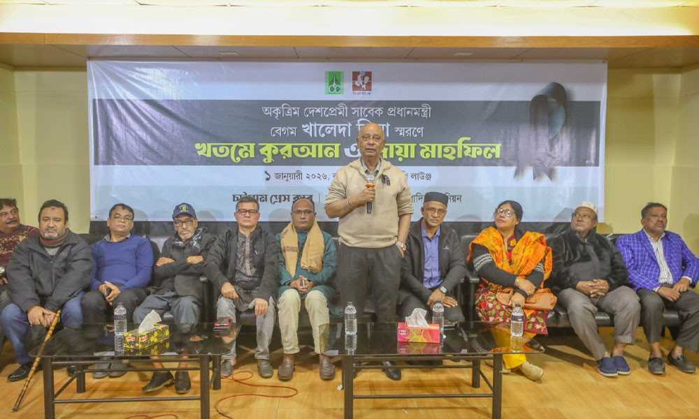 আজ বৃহস্পতিবার (০১ জানুয়ারি) দুপুরে চট্টগ্রাম প্রেস ক্লাবের ভিআইপি লাউঞ্জে ক্লাবের সভাপতি জাহিদুল করিম কচির সভাপতিত্বে আয়োজিত শোকসভা সঞ্চালনা করেন যুগ্ম সম্পাদক মিয়া মো. আরিফ। এর আগে সকালে খতমে কোরআন ও দোয়া মহফিল অনুষ্ঠিত হয়। বেগম খালেদা জিয়ার আত্মার মাগফিরাত কামনা করে বিশেষ মোনাজাত অনুষ্ঠিত হয়।