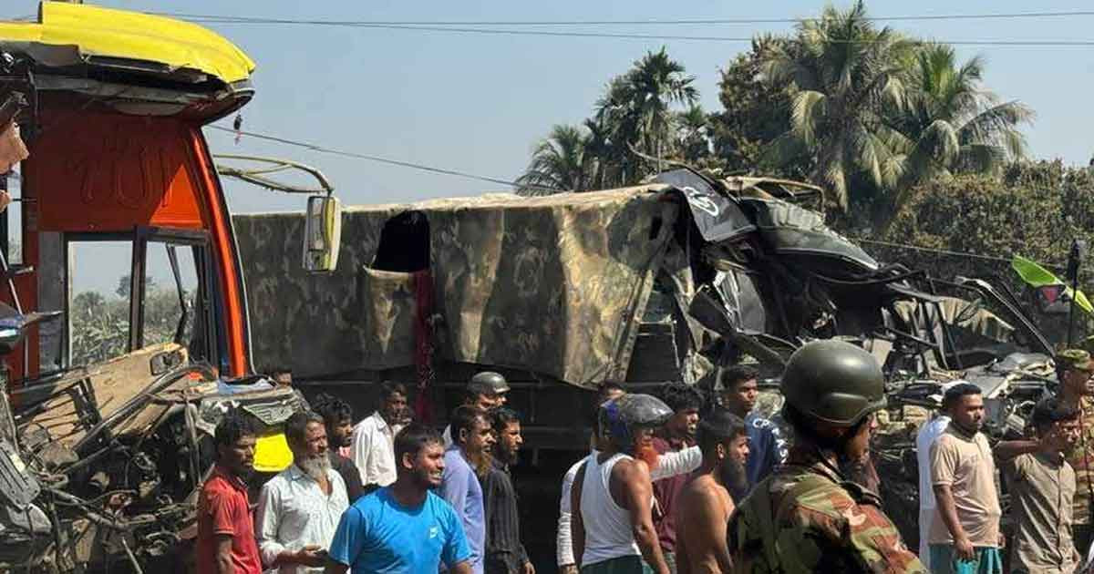 নিহতরা হলেন— সেনাবাহিনীর ট্রাকের চালক সার্জেন্ট রেজাউল করিম, খান ট্রাভেলস বাসের চালক আব্দুল বাসেত। নিহত এক পথচারী।