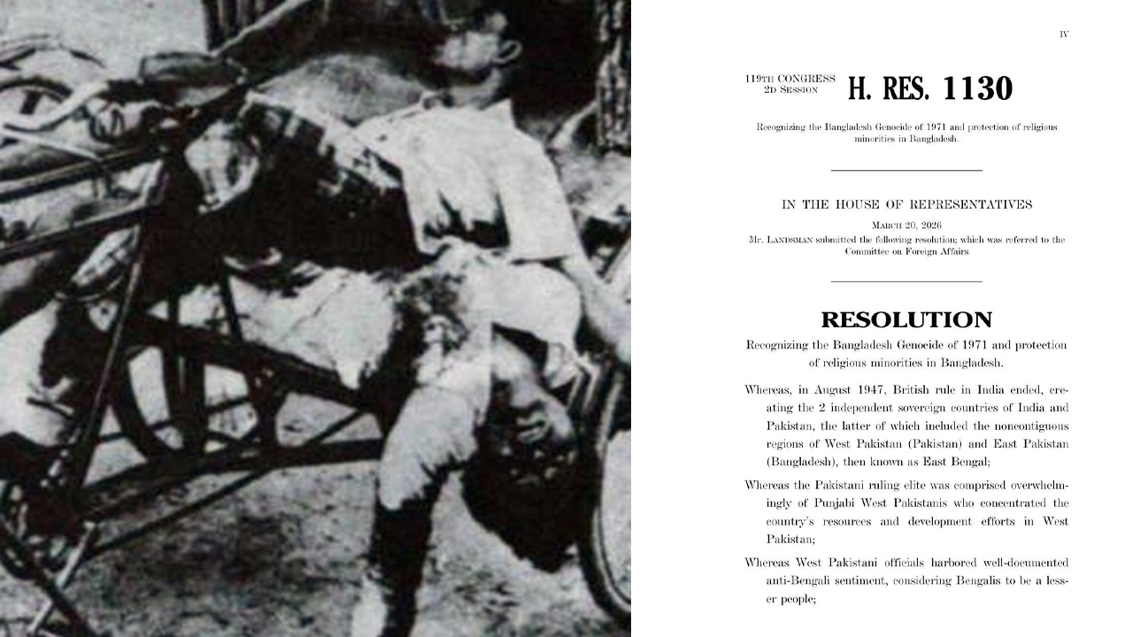 তৎকালীন মার্কিন কূটনীতিক আর্চার ব্লাডের পাঠানো ঐতিহাসিক ‘ব্লাড টেলিগ্রাম’ এবং সাংবাদিক অ্যান্থনি মাসকারেনহাসের বর্ণনার কথা উল্লেখ করে প্রস্তাবে বলা হয়েছে, পাকিস্তান সেনাবাহিনী পরিকল্পিতভাবে রাজনৈতিক নেতা, বুদ্ধিজীবী এবং সাধারণ নাগরিকদের হত্যা করেছে। বিশেষ করে হিন্দু সম্প্রদায়ের ওপর চালানো পদ্ধতিগত দমন-পীড়ন এবং দুই লাখের বেশি নারীর ওপর চালানো যৌন সহিংসতাকে এই প্রস্তাবে মানবতাবিরোধী অপরাধ হিসেবে চিহ্নিত করা হয়েছে। সিনেটর এডওয়ার্ড এম কেনেডির তৎকালীন তদন্ত প্রতিবেদনের উদ্ধৃতি দিয়ে এতে জানানো হয়, এই ধ্বংসযজ্ঞ ছিল সম্পূর্ণ রাষ্ট্রীয় মদতপুষ্ট ও সুপরিকল্পিত।